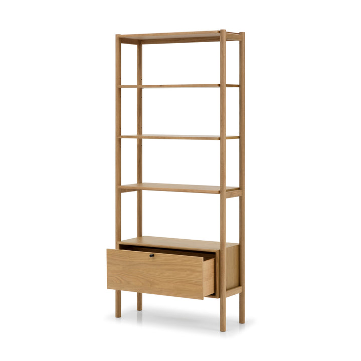 The Franz bookcase is crafted from solid American oak combined with high-quality oak veneer, offering a balance of natural beauty and everyday practicality. With its clean lines and warm oak grain, it blends effortlessly into both modern and classic spaces.