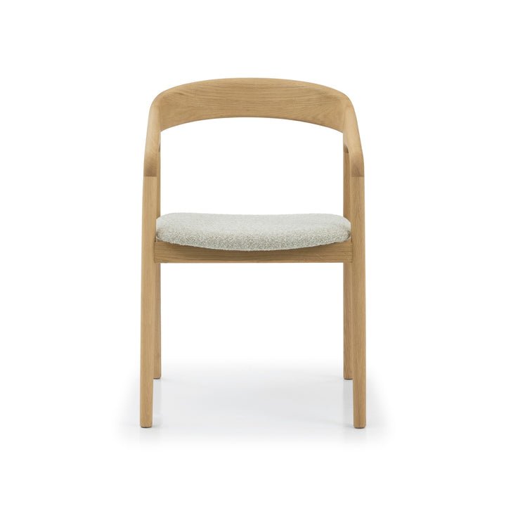 The Celeste oak dining chair is a statement of refined simplicity. Crafted from real American oak wood, this chair offers both durability and natural beauty. Its curved frame flows effortlessly into the armrests, creating a comfortable and supportive shape.