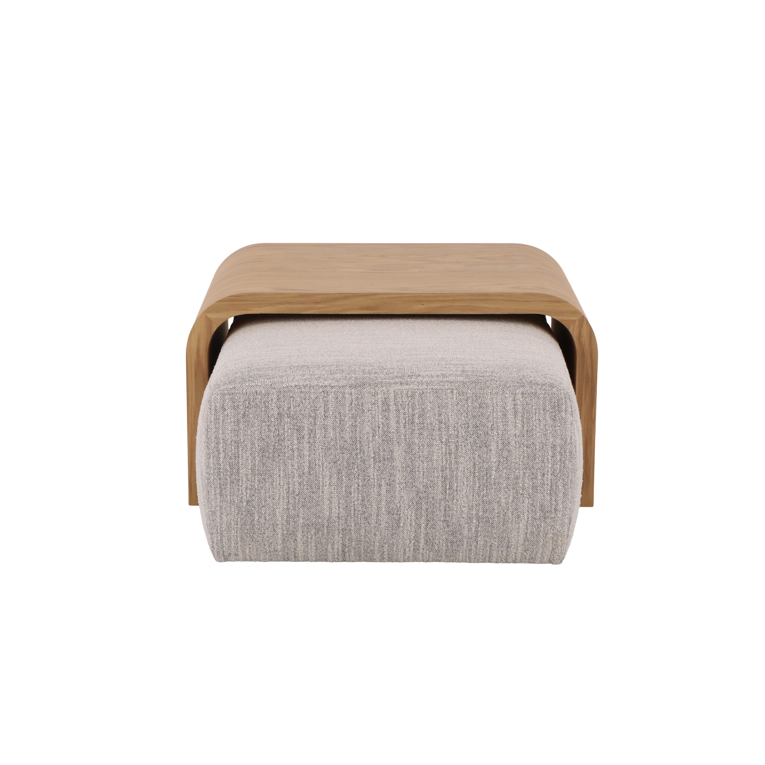 The Celeste coffee table stands out with its refined and functional design that brings balance to any living space. Crafted from solid oak, the central table features a smooth wooden surface, while two soft poufs can be conveniently stored underneath when not in use. Upholstered in a light grey quality fabric, the poufs add a touch of comfort and texture, making the set both practical and visually elegant.
