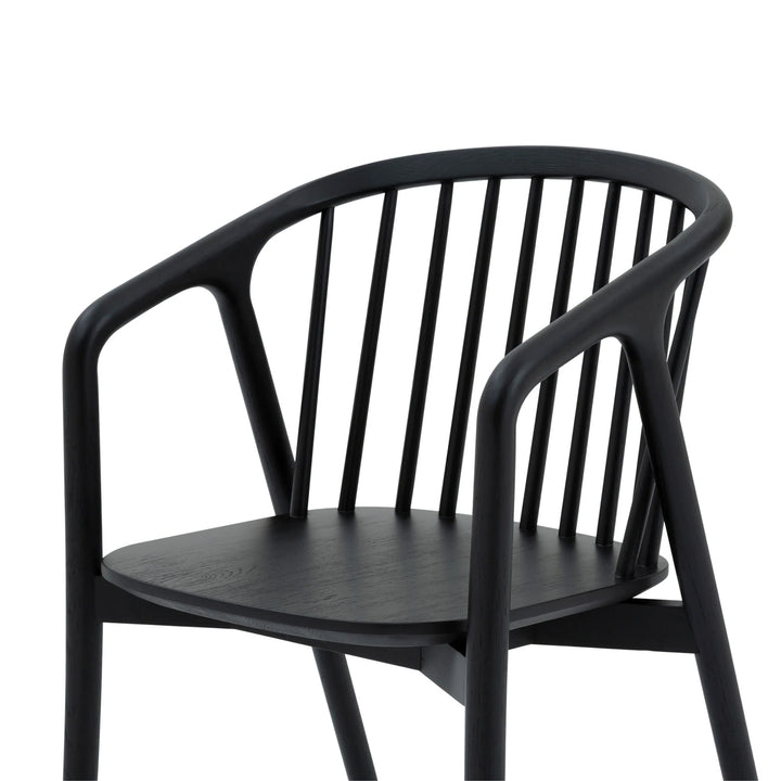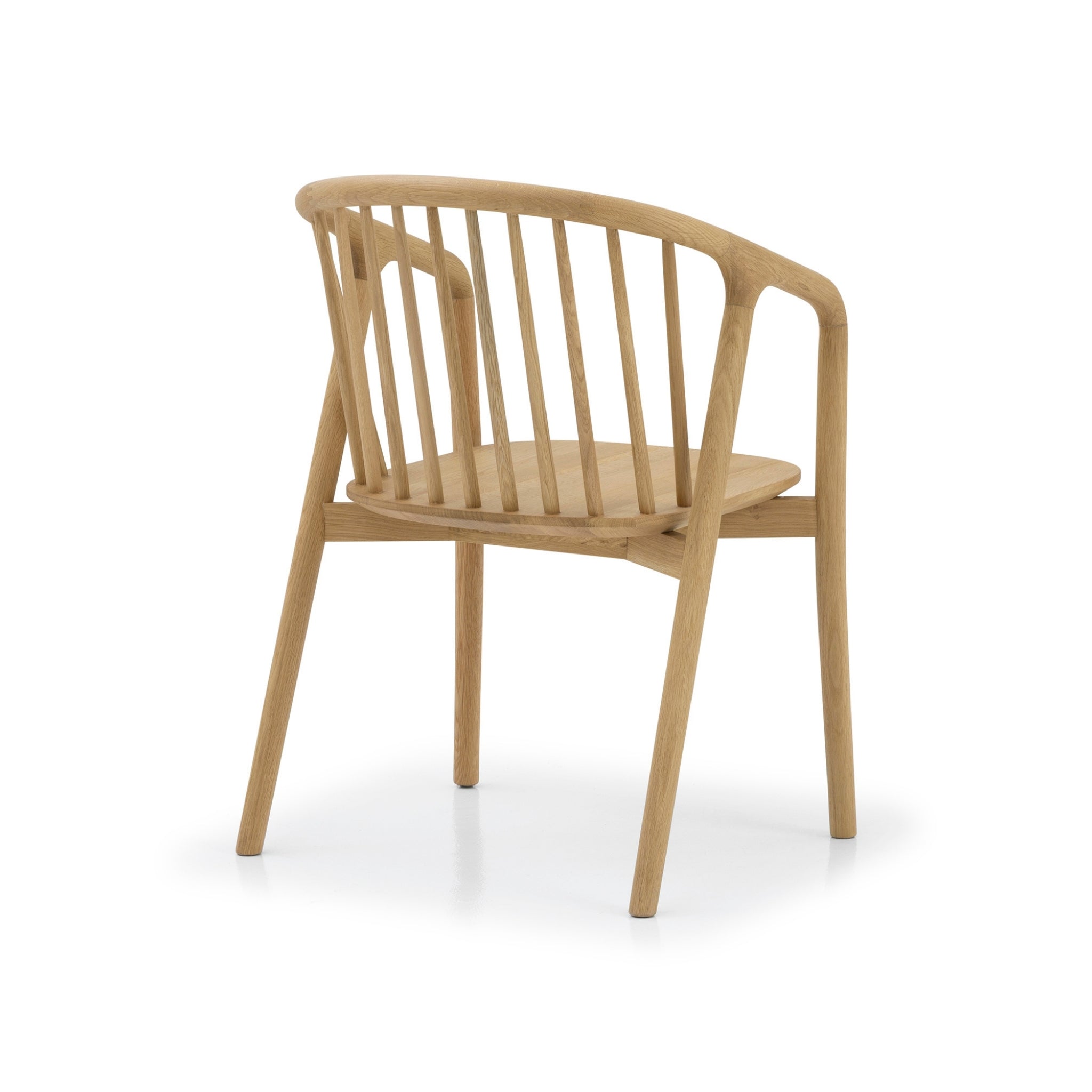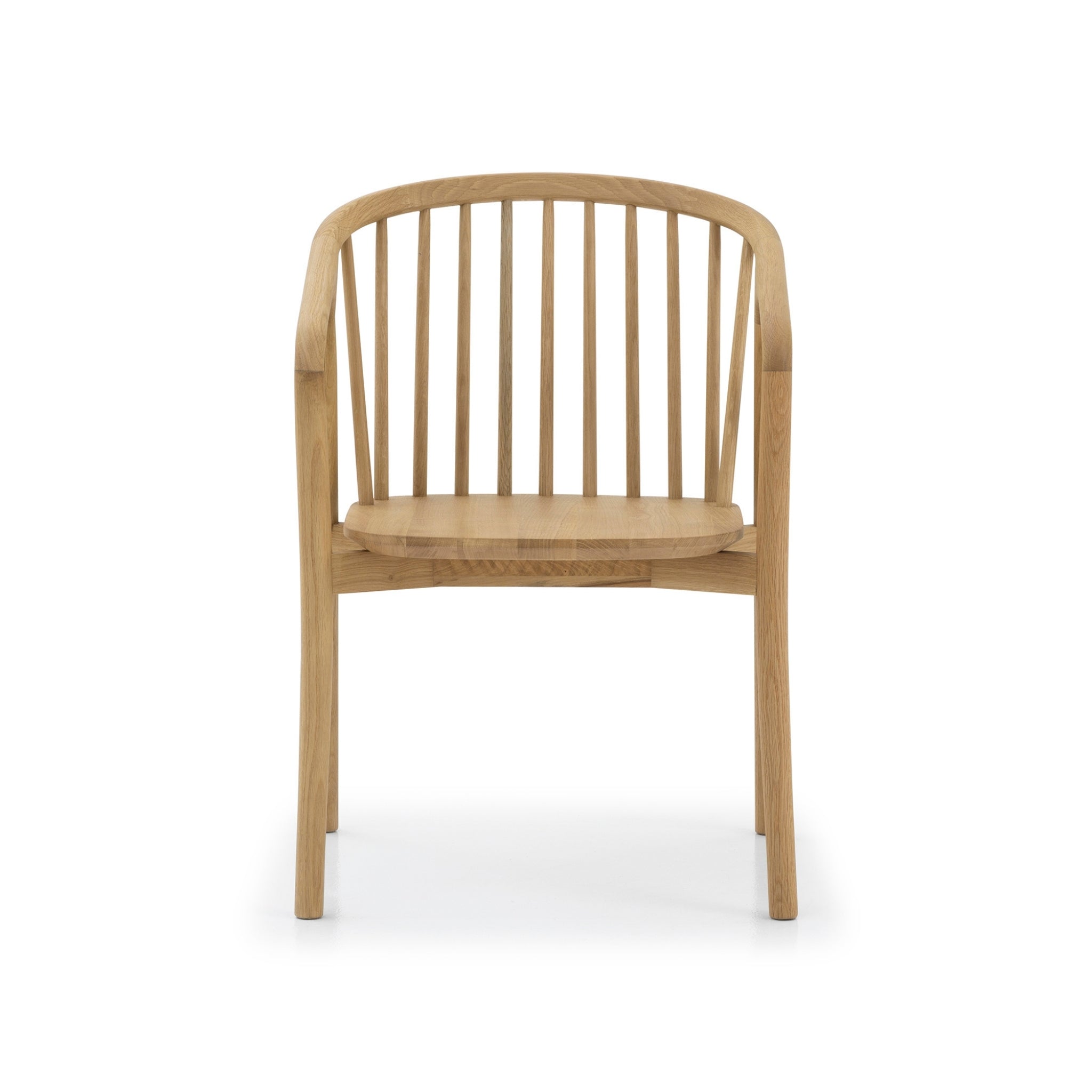 The Saga Dining Chair is a celebration of oak in its purest form. Sculpted from solid wood, its spindle backrest and rounded frame draw on timeless design traditions, reimagined here with a modern lightness. The result is a chair that feels both familiar and fresh, an effortless fit in any dining setting.