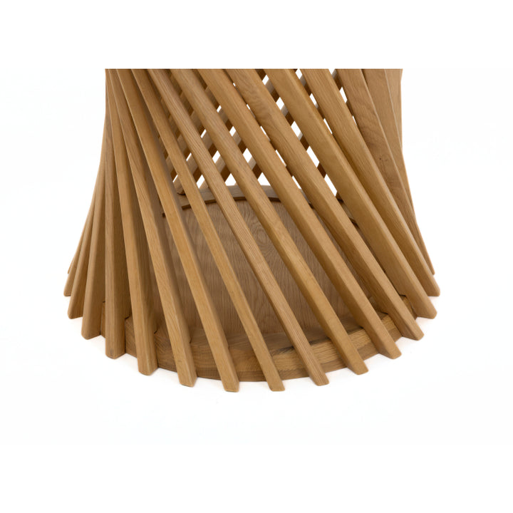 The Emma dining table stands out with its exceptional design, featuring an airy twisted-leg base that adds elegance and character to any dining space. The round tabletop tapers gracefully at the edges, giving it a refined and modern silhouette.