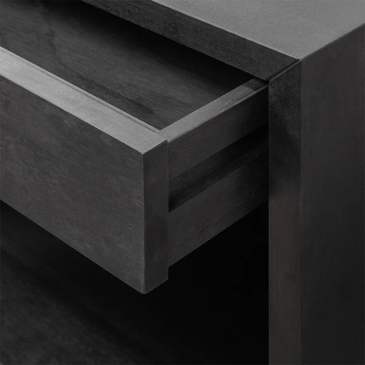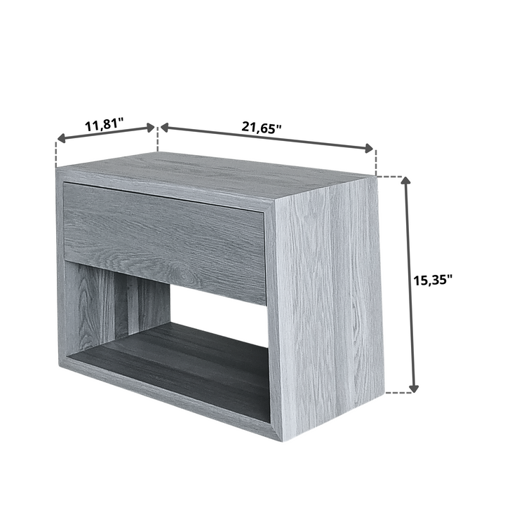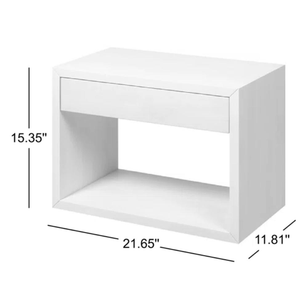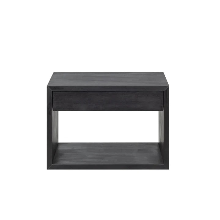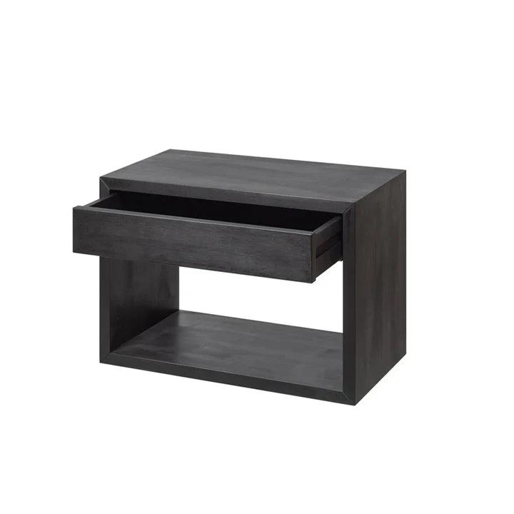 A single drawer provides practical storage for everyday essentials like books, glasses, or electronics, while the open shelf below offers additional room for décor or nighttime necessities.