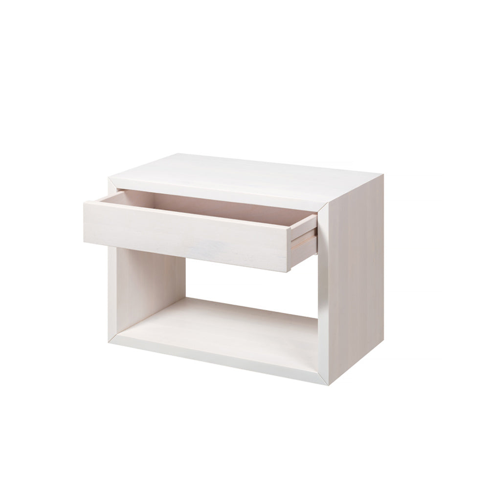 Equipped with a single drawer, it offers practical storage for essentials such as books, glasses, or small electronics, while the open shelf below provides extra room for décor or nighttime items. The matte lacquer finish highlights the beech’s natural character, giving the surface a soft, refined touch that’s also easy to care for.