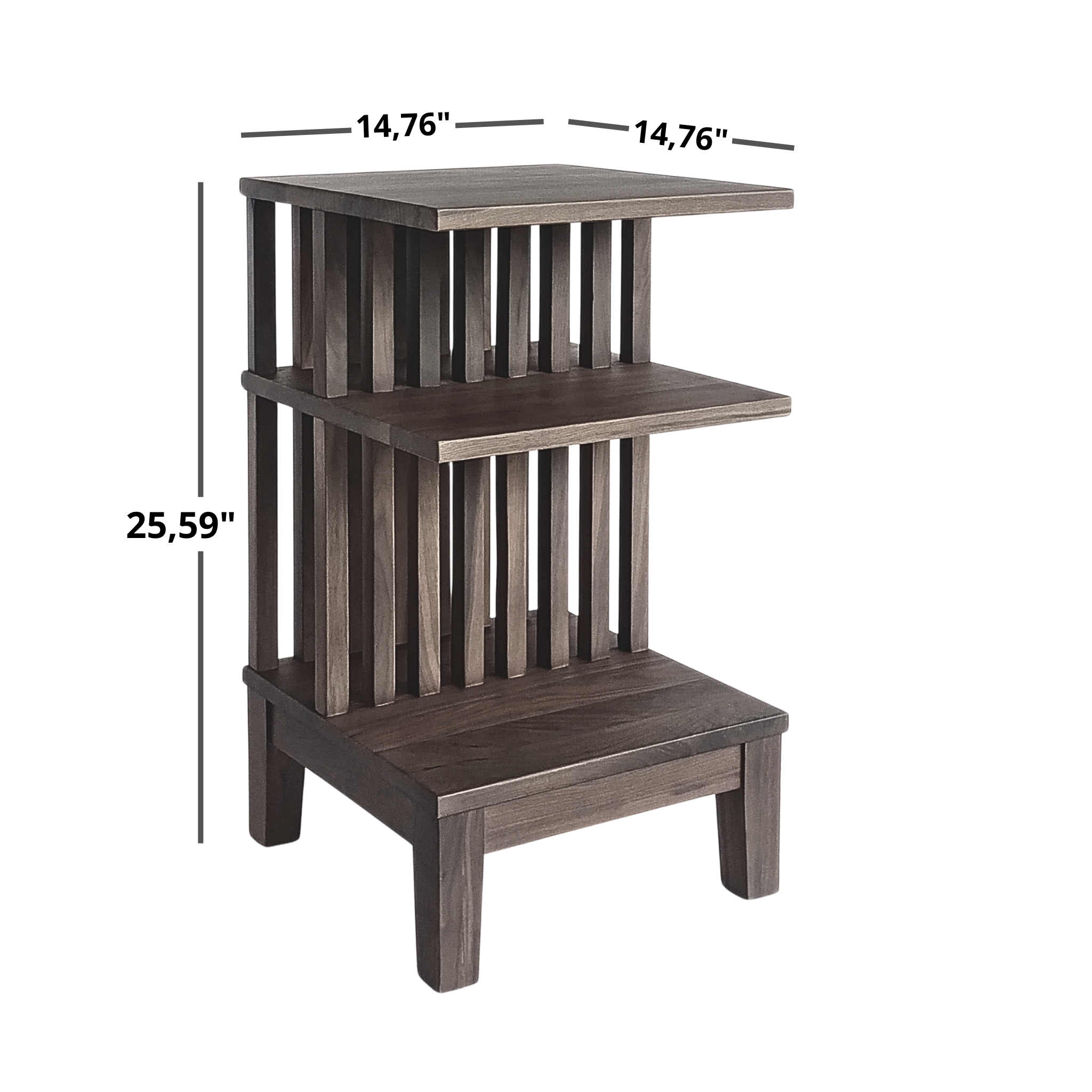 The vertical slat detailing gives Celine a striking architectural presence, while the warm walnut tones highlight the natural beauty of the wood grain. Compact yet versatile, it works equally well as a bedside table, living room accent, or display stand.