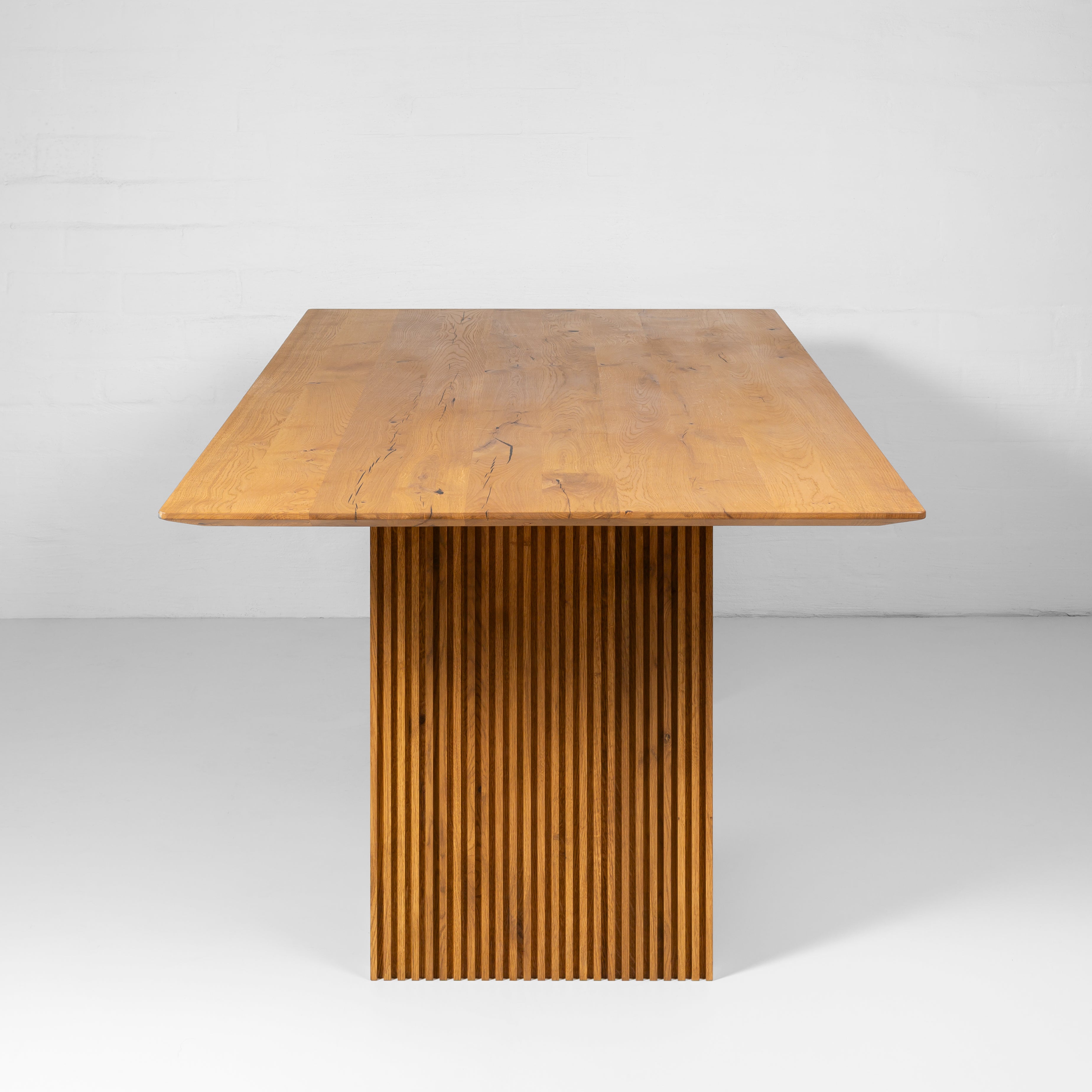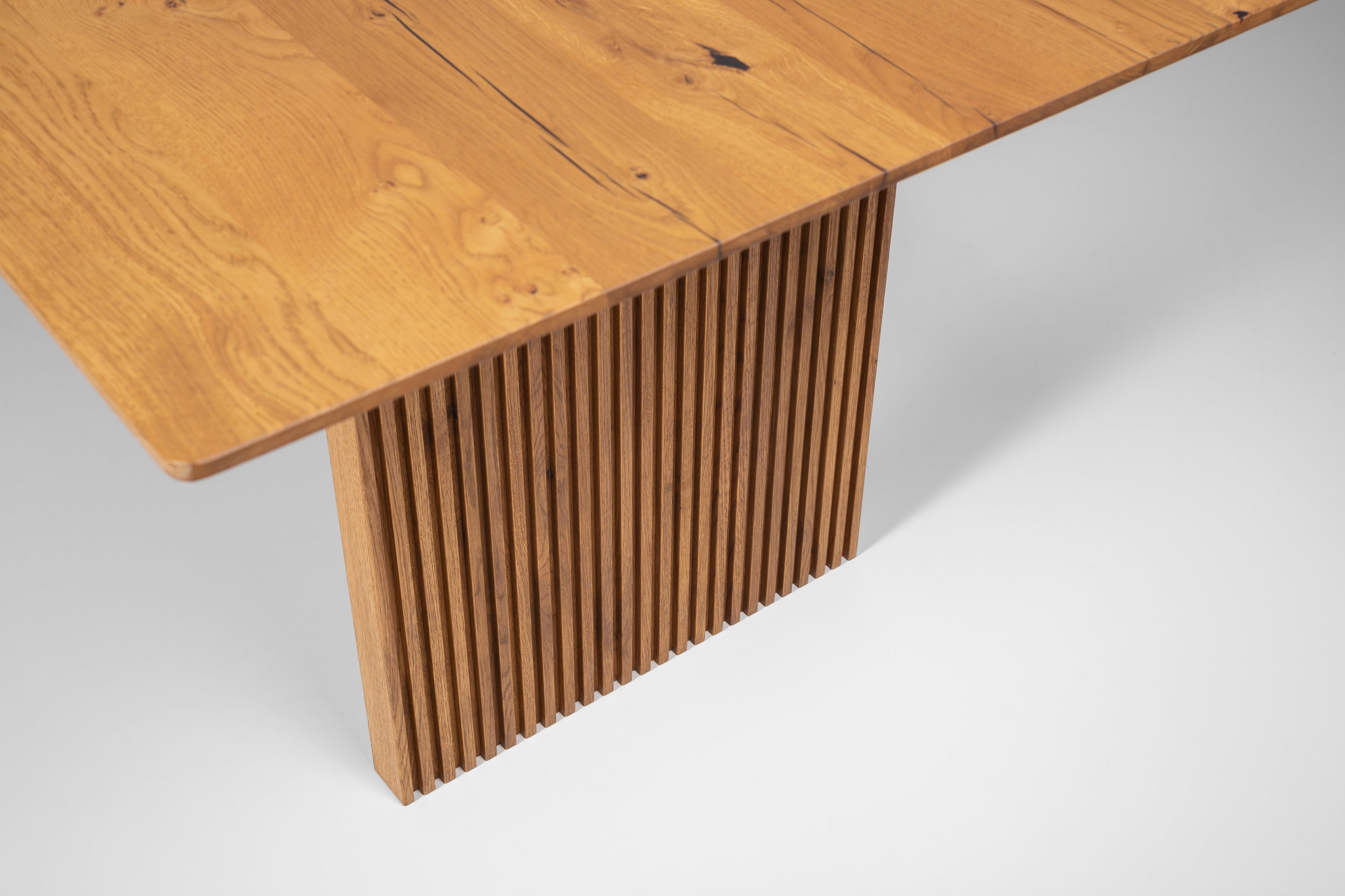 Our solid oak dining table Tommy is handmade, shaped by artisans who bring out the oak’s natural warmth with a smooth oil-wax finish. The wood’s character - shifting tones, flowing grain, and honest imperfections makes every table a one-of-a-kind treasure. Strong, timeless, and grounding, it’s a place for family dinners, late-night talks, or simply resting your hands on something real.