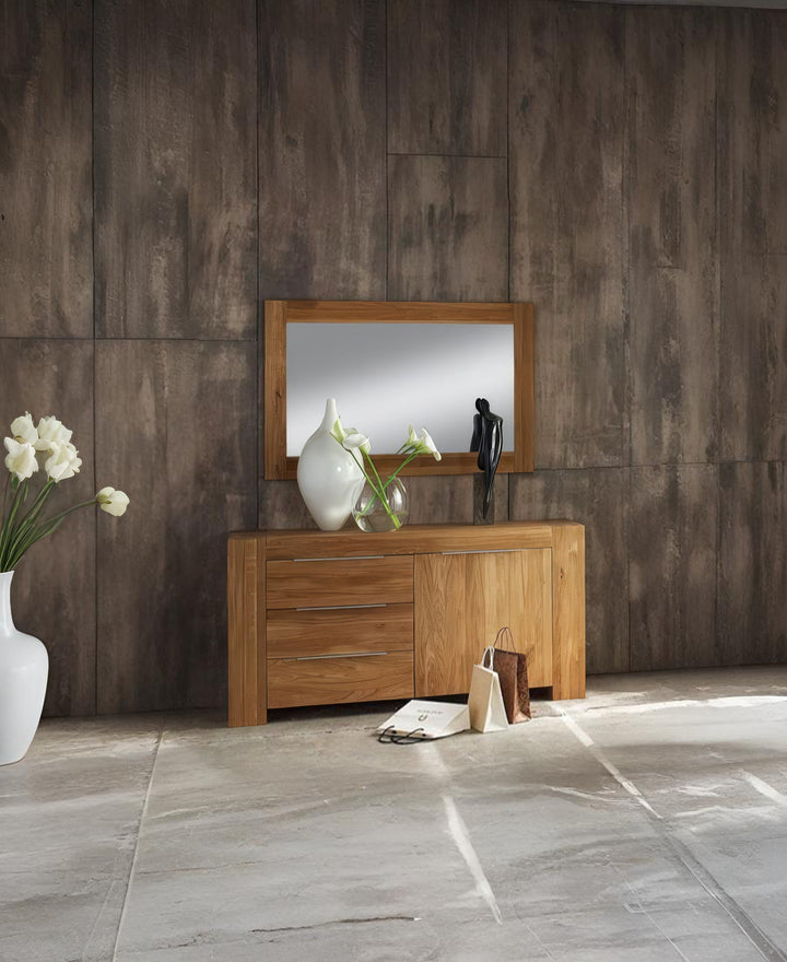 The Roma Oak Sideboard is a bold statement of natural beauty and modern function. Crafted from solid oak, it highlights the wood’s authentic grain and warm tone, bringing timeless character into any interior. Its clean design and generous proportions make it a versatile piece, equally at home in bedrooms, entryways, or living spaces.