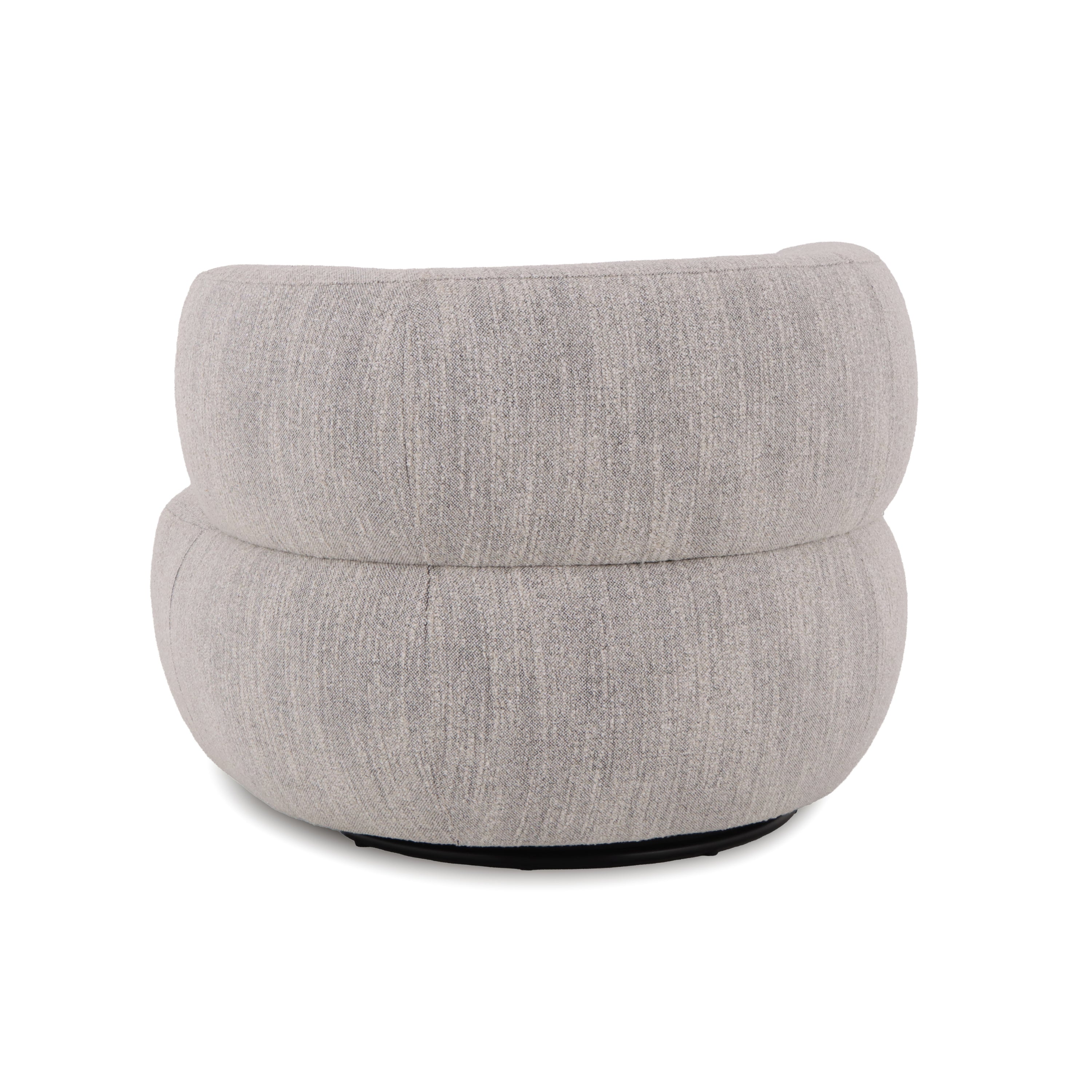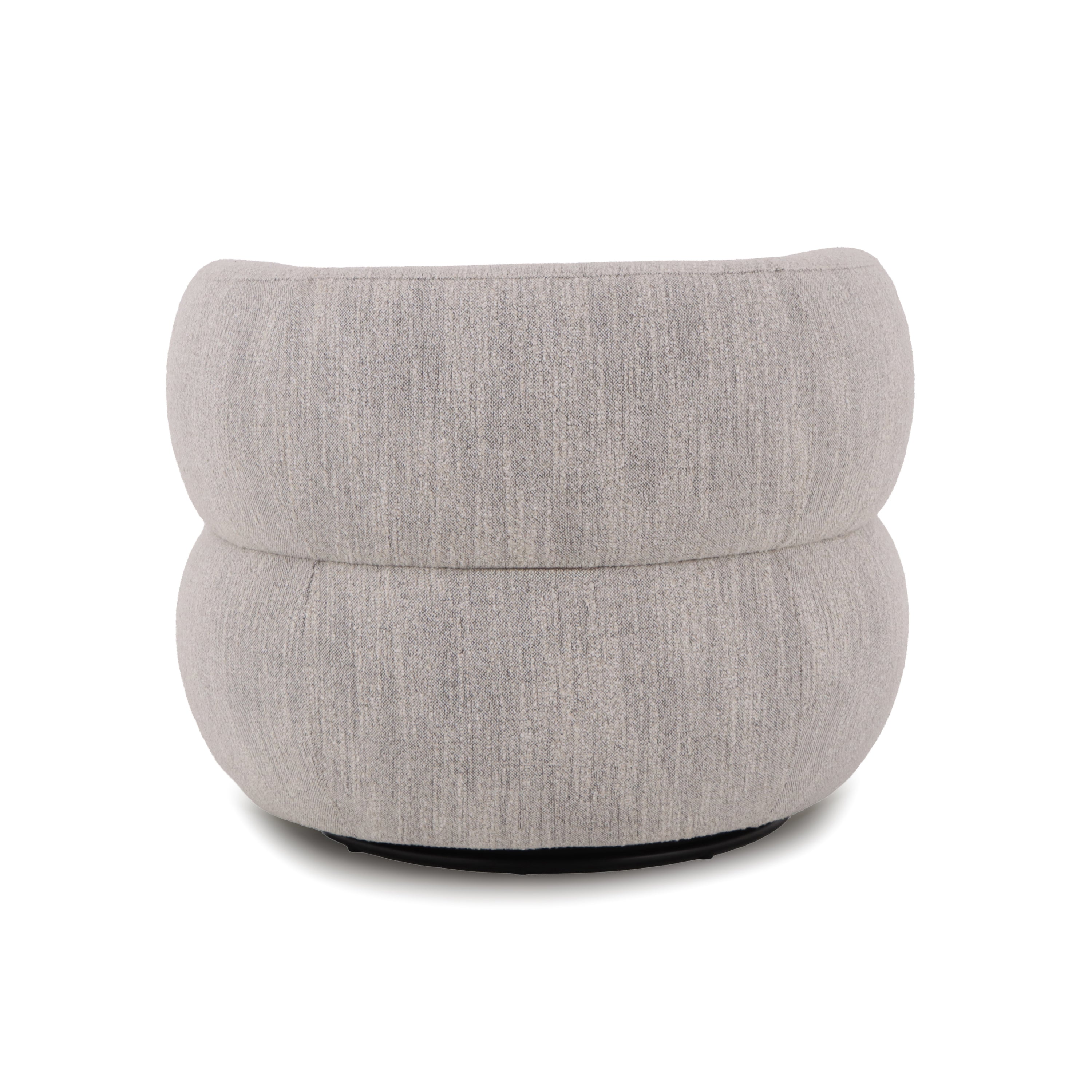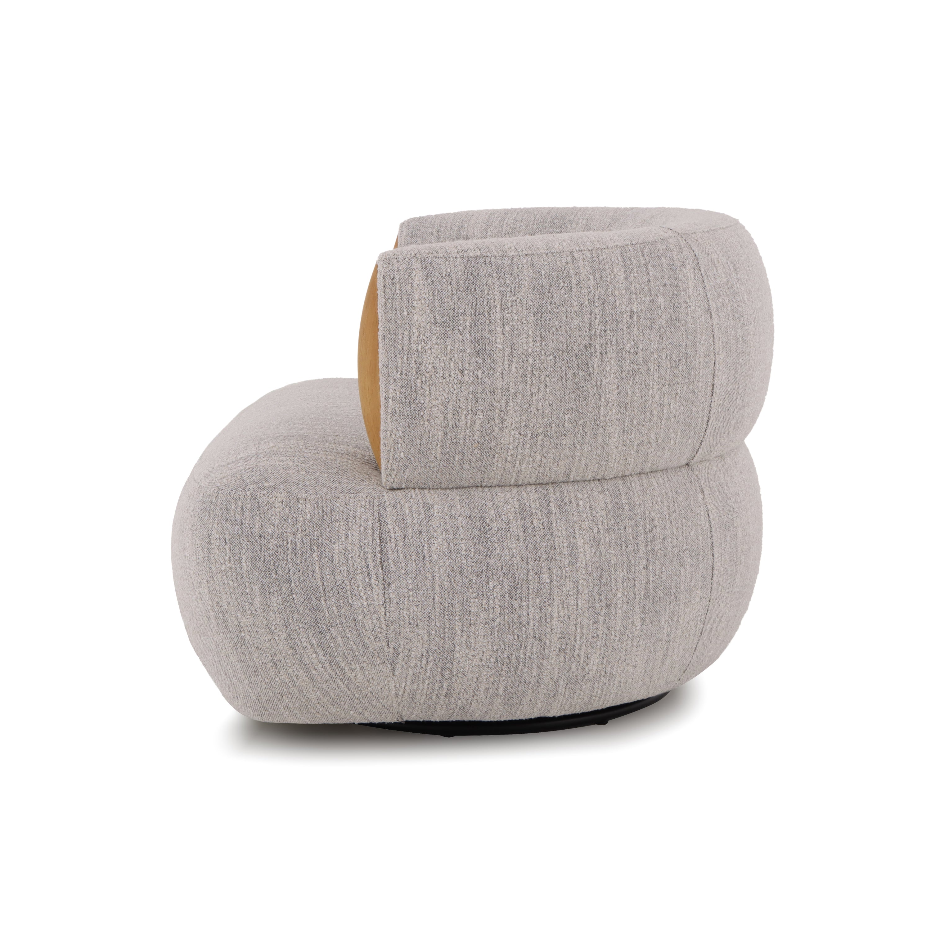Upholstered in soft Leigh fabric in a calming light grey tone, the Theo armchair offers a cozy, inviting seat that feels as good as it looks. The integrated 360° swivel mechanism ensures full rotation without moving the base, making it both stylish and practical for everyday use.