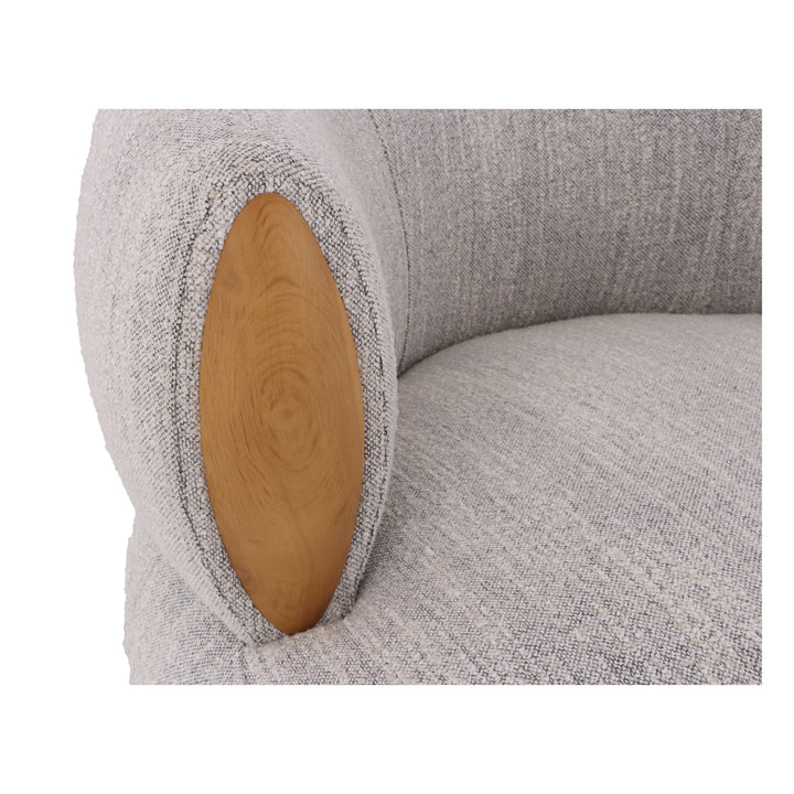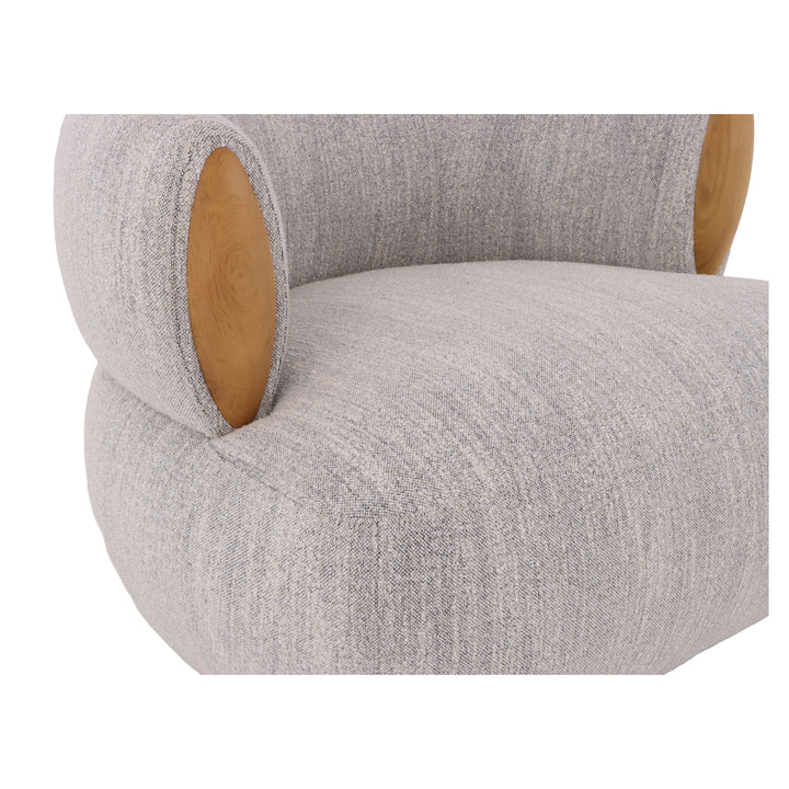 Theo – Light Grey Swivel Armchair with Wooden Accents