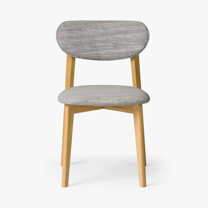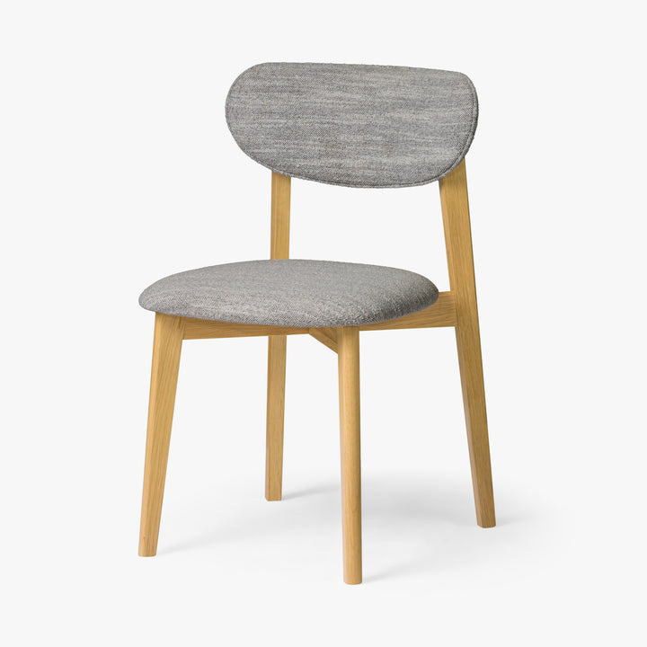 Designed with comfort in mind, the chair features a gently contoured backrest and a cushioned seat that invite you to linger at the table. The natural oak frame, finished in a subtle matte lacquer, accentuates the wood’s organic grain and adds a sense of warmth to the room.