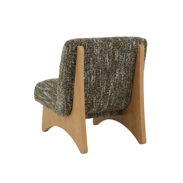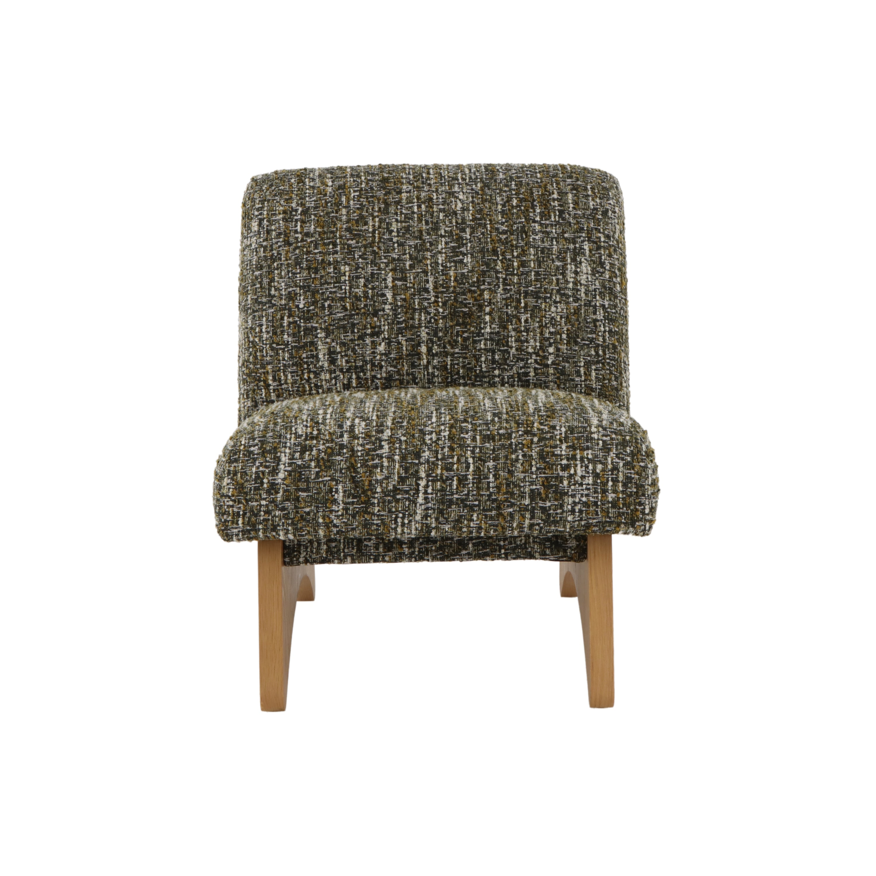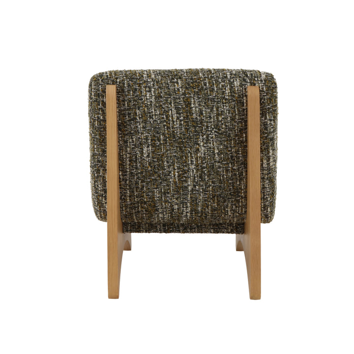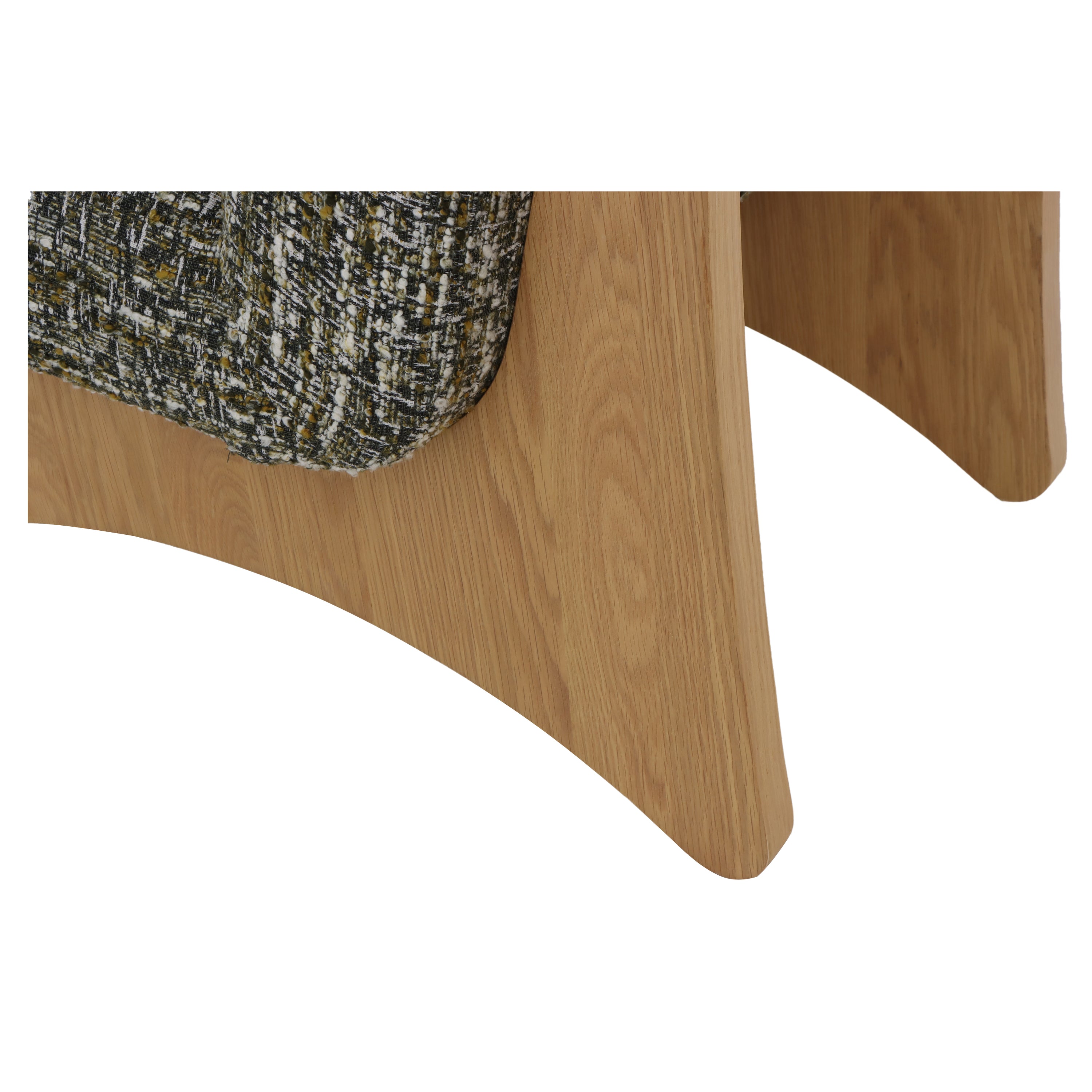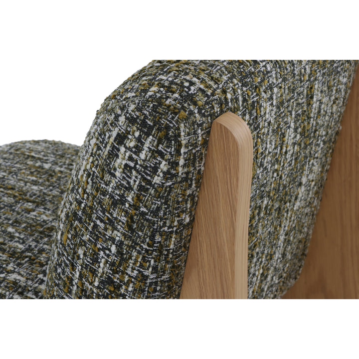 The Tommy armchair stands out with its rich green textured upholstery and refined solid oak base, combining natural beauty with contemporary comfort. The luxurious woven fabric adds depth and character, while the generous cushioning ensures a soft and supportive seating experience.