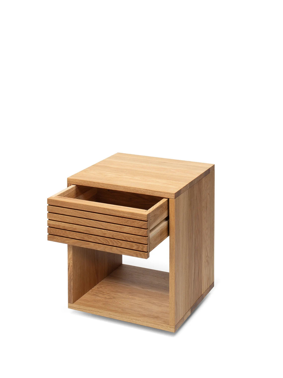 The Emma nightstand combines timeless design with everyday function in a compact form. Handcrafted from solid American oak and finished with natural oilwax, it highlights the unique beauty of real wood while offering lasting durability. A smooth-running drawer keeps essentials tucked away, while an open shelf adds easy-access storage. With its clean lines and small footprint, Emma is the perfect solid wood nightstand for modern bedrooms where space matters.